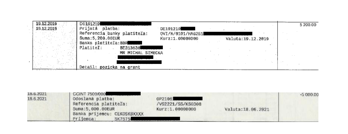 Späť ale k bankovým výpisom, ktoré sa spomínali v úvode. Podľa zdroja, ktorý si želá zostať v anonymite, sa uskutočnili finančné transakcie medzi združením Projekt Fórum a lídrom Progresívneho Slovenska Michalom Šimečkom.